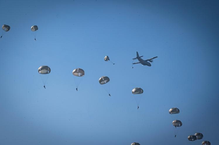 Soldiers from the 11 Airmobile Brigade of the Royal Netherlands Army and seven other NATO nations were also jumping.