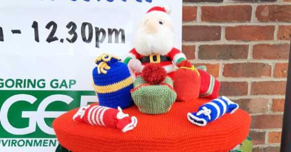The knitted decoration was one of three made by members of Cleeve-by-Goring Women’s Institute for Christmas and featured woollen presents, crackers and a Santa centrepiece.