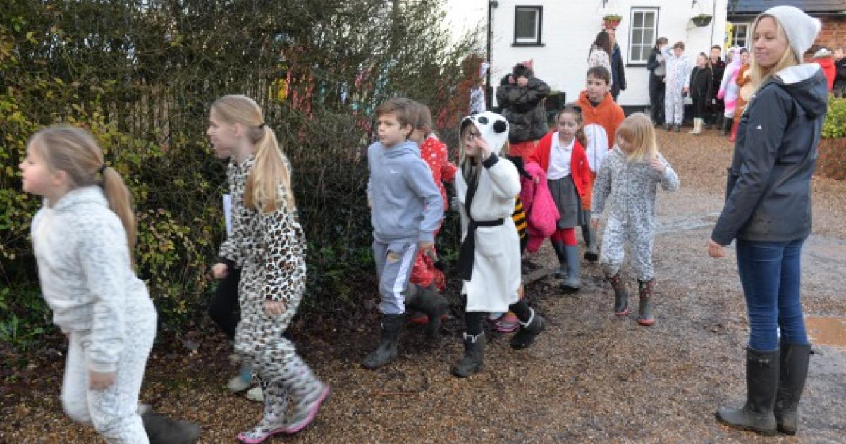 3.5-mile walk from the school in Church Lane to the Maltsters Arms in Rotherfield Greys and back via footpaths through Greys Green Golf Course. They enjoyed hot chocolate at the pub. Many wore face paint and dressed in costumes such as tiger and shark onesies.