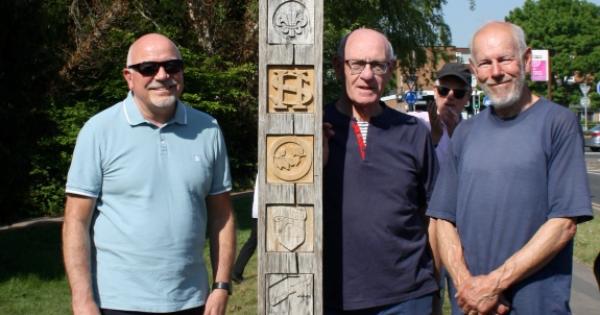 The unveiling was attended by members of organisations represented on the several carved plaques that decorate the post. The former village residents’ association commissioned the sign, which was made by the Berkshire Woodcarvers’ Association in 2003.