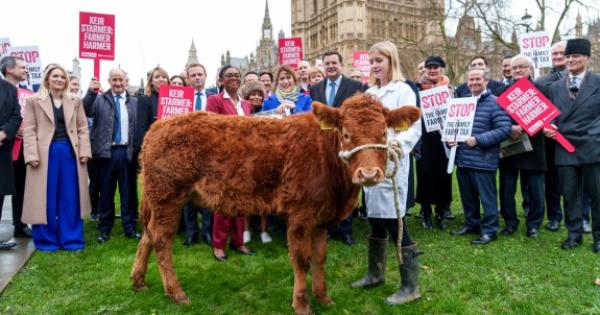 A FARMER and his daughter brought a cow to Westminster to protest against the changes to inheritance tax.
