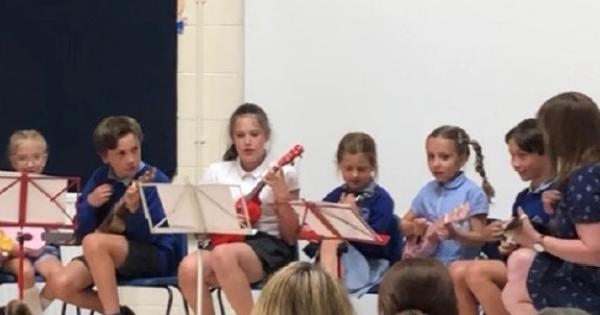 Performing alongside them were pupils giving instrumental solos on the piano and flute, the Frieth Ukulele Group with a medley of hits and the guitar group performing the Macarena and Riders on the Storm.