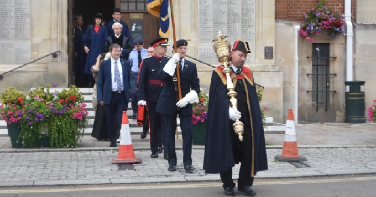The service began with a procession from the town hall led by the town sergeant, James Churchill-Coleman, who carried the mace.