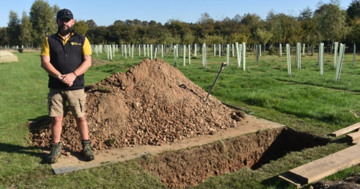 Leedam Natural Burials has a focus on sustainability, with graves dug among trees native to the UK, planted at random with a gap to allow sunlight through.