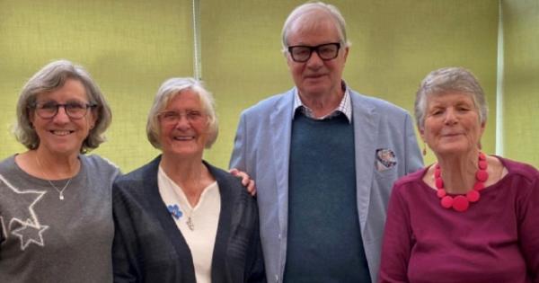 They received a 50-year service badge and certificate at a coffee morning in Crazies Hill.