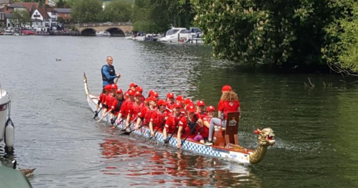 A GROUP of mothers rowed 20 miles along the River Thames in a Chinese dragon boat to raise money for their children’s school.